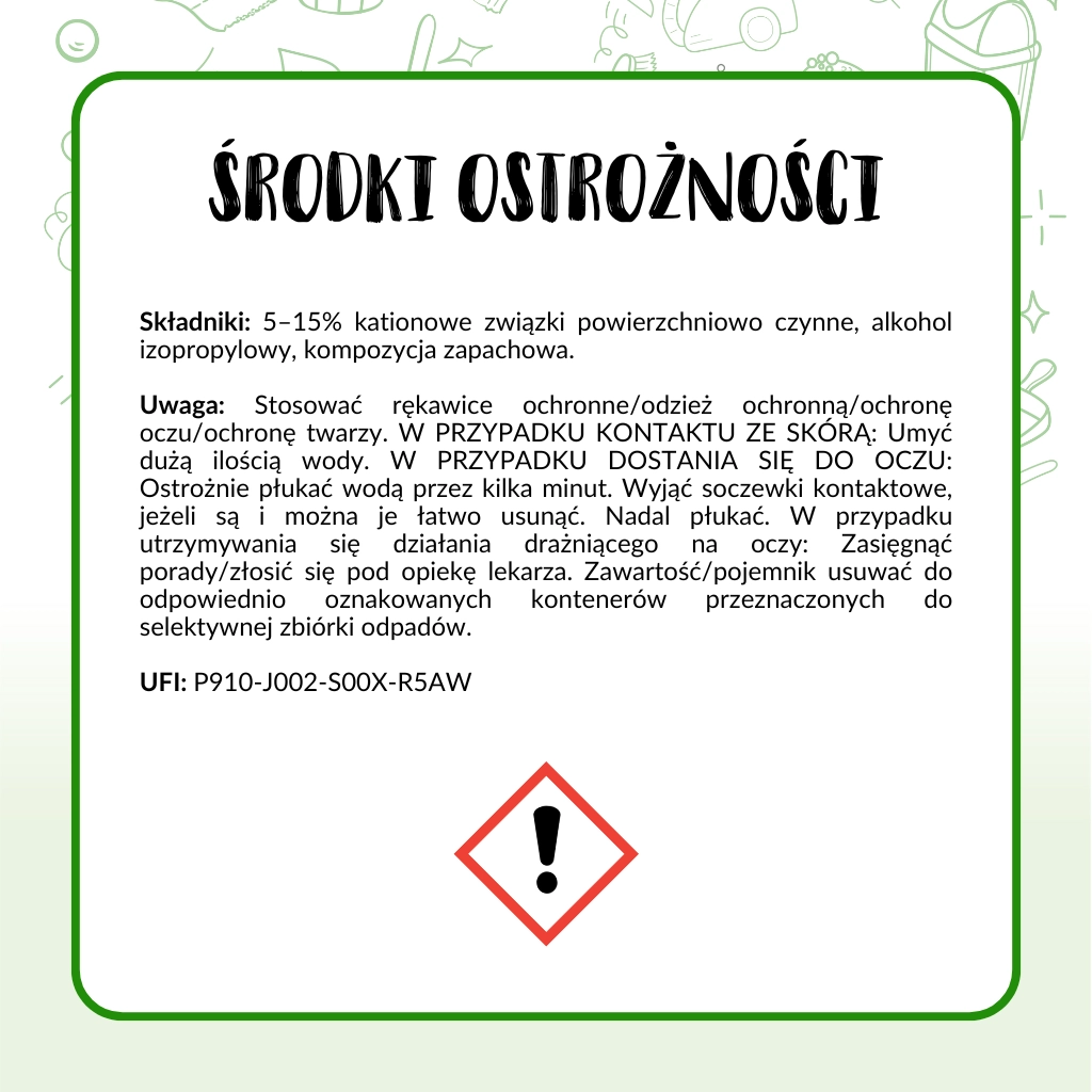 | Sposób użycia | Woda miękka 35 ml płynu (ok. połowa nakrętki), Woda średnio twarda 45 ml (3/4 nakrętki), Woda twarda 55 ml płynu (pełna nakrętka) |