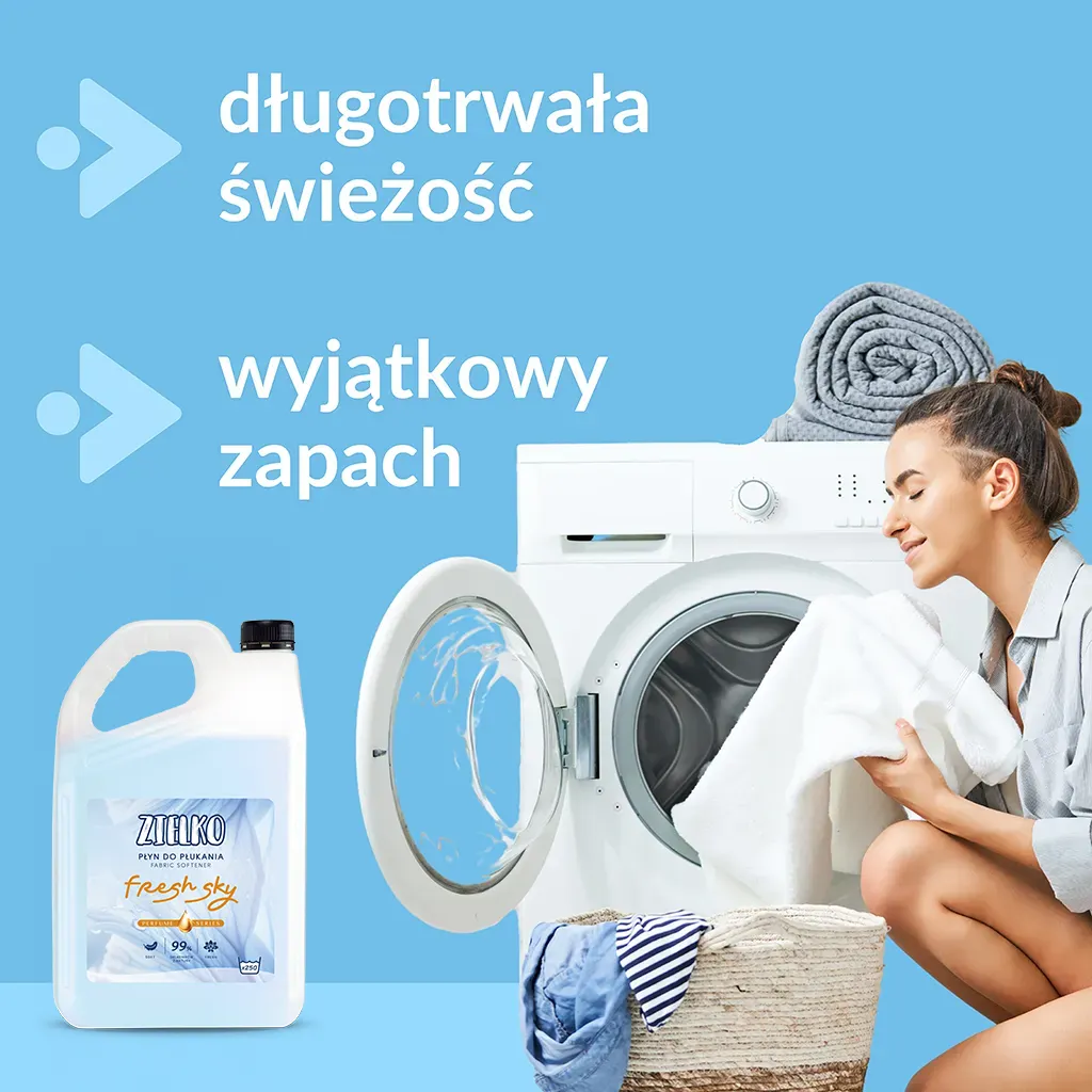Duża pojemność 5 l pozwala na wykonanie wielu cykli płukania bez konieczności częstych zakupów, a wydajna formuła sprawia, że wystarcza na długie miesiące użytkowania. To praktyczne i ekonomiczne rozwiązanie dla każdego domu — szczególnie tam, gdzie pranie wykonywane jest regularnie, a priorytetem jest jednocześnie świeżość, miękkość i naturalna pielęgnacja ubrań.