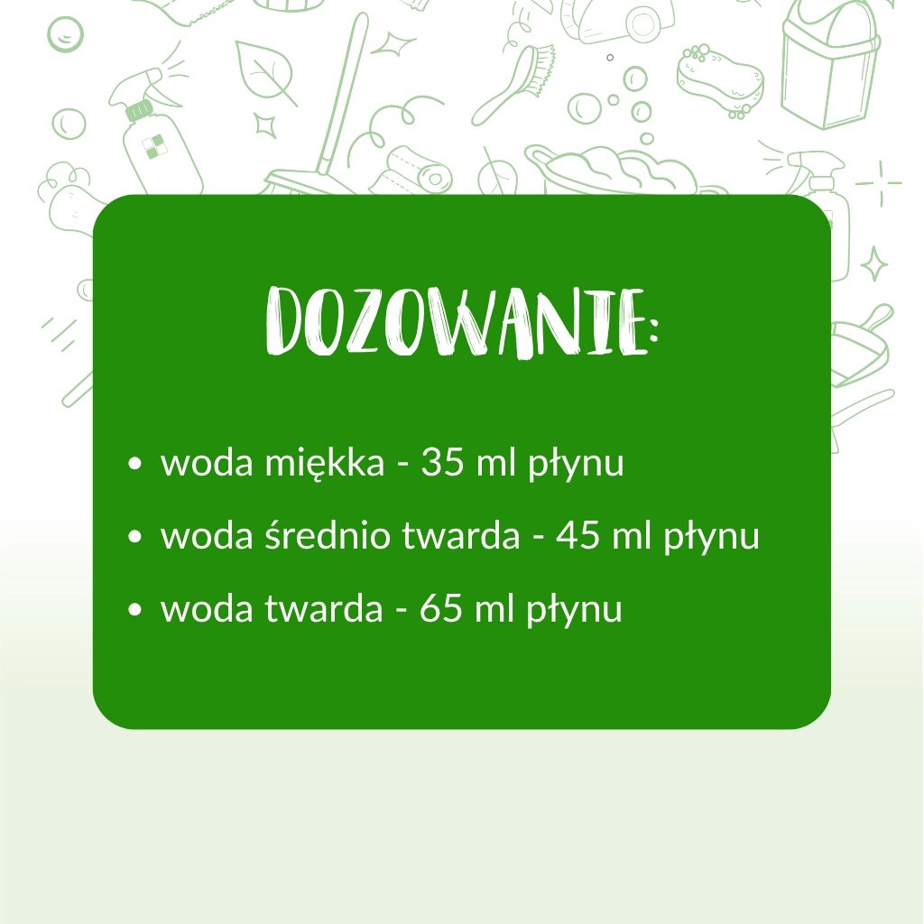Dozowanie:Składniki: <5% kationowe związki powierzchniowo czynne, alkohol izopropylowy, kompozycja zapachowa, Limonene, Hexyl Cinnamal, Linalool, Geraniol, Haxamethylindanopyran, Citrus Aurantium Peel Oil.