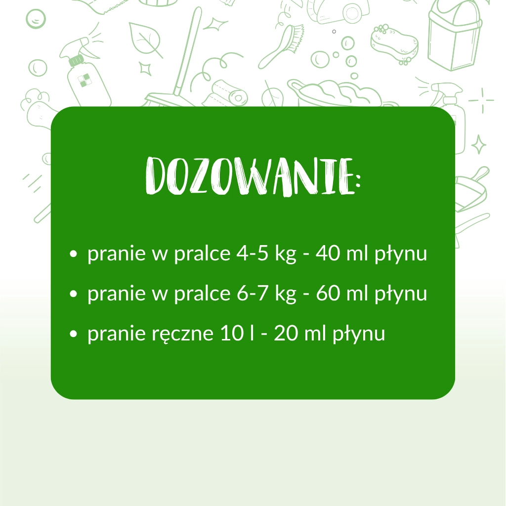 Biodegradowalny skład płynu ZIELKO jest bezpieczny dla naturalnej mikroflory w przydomowych oczyszczalniach ścieków. To wybór, który dba zarówno o czystość ubrań, jak i o dobro środowiska.