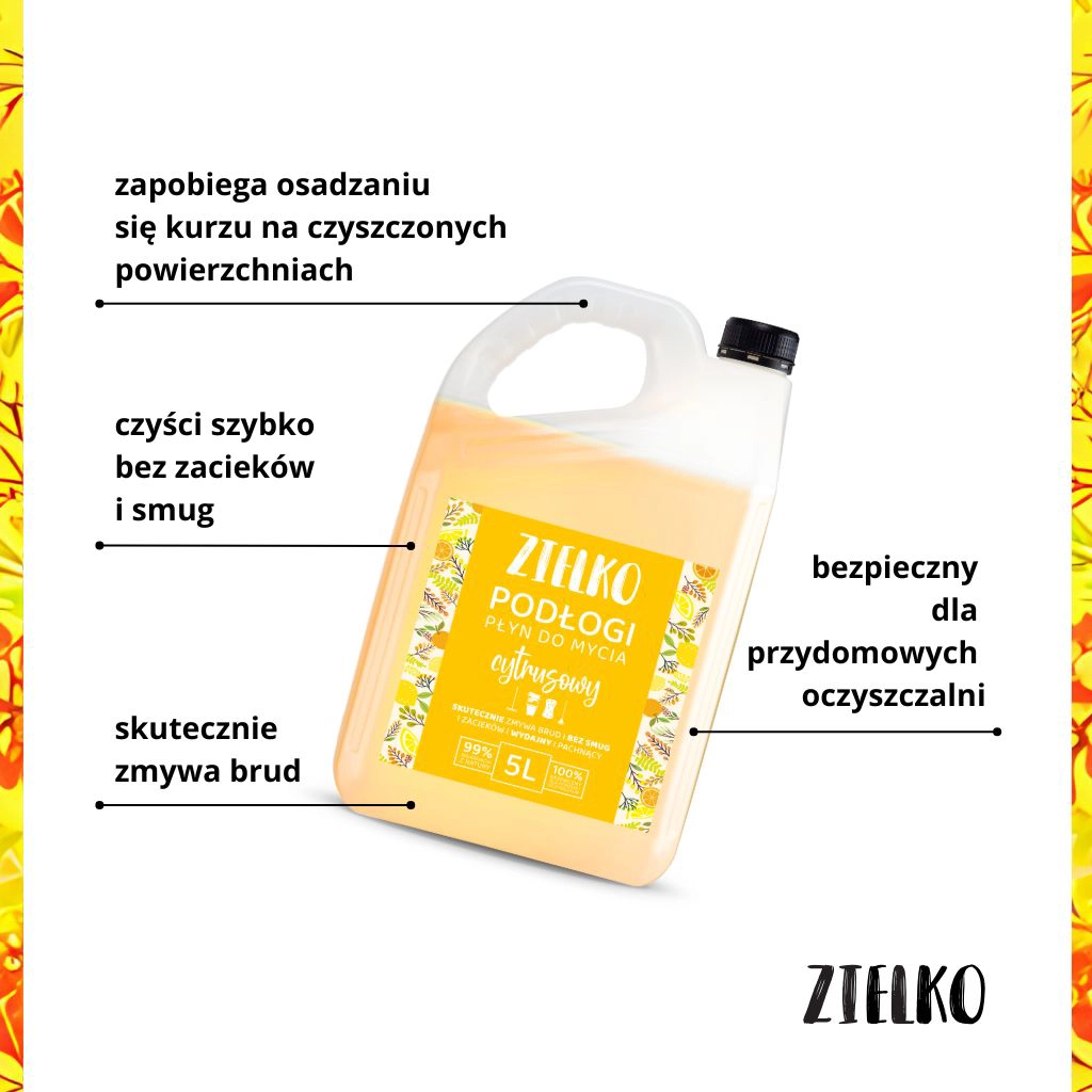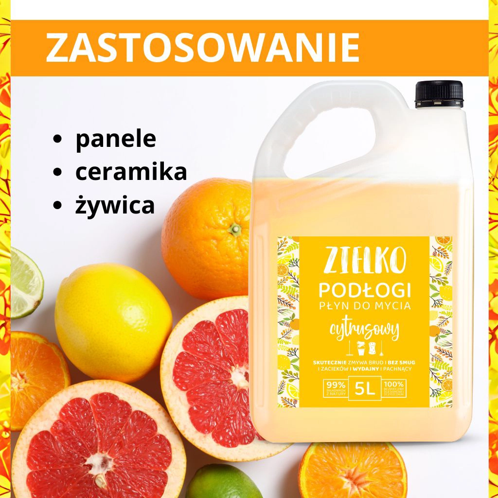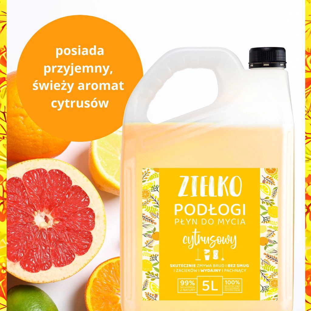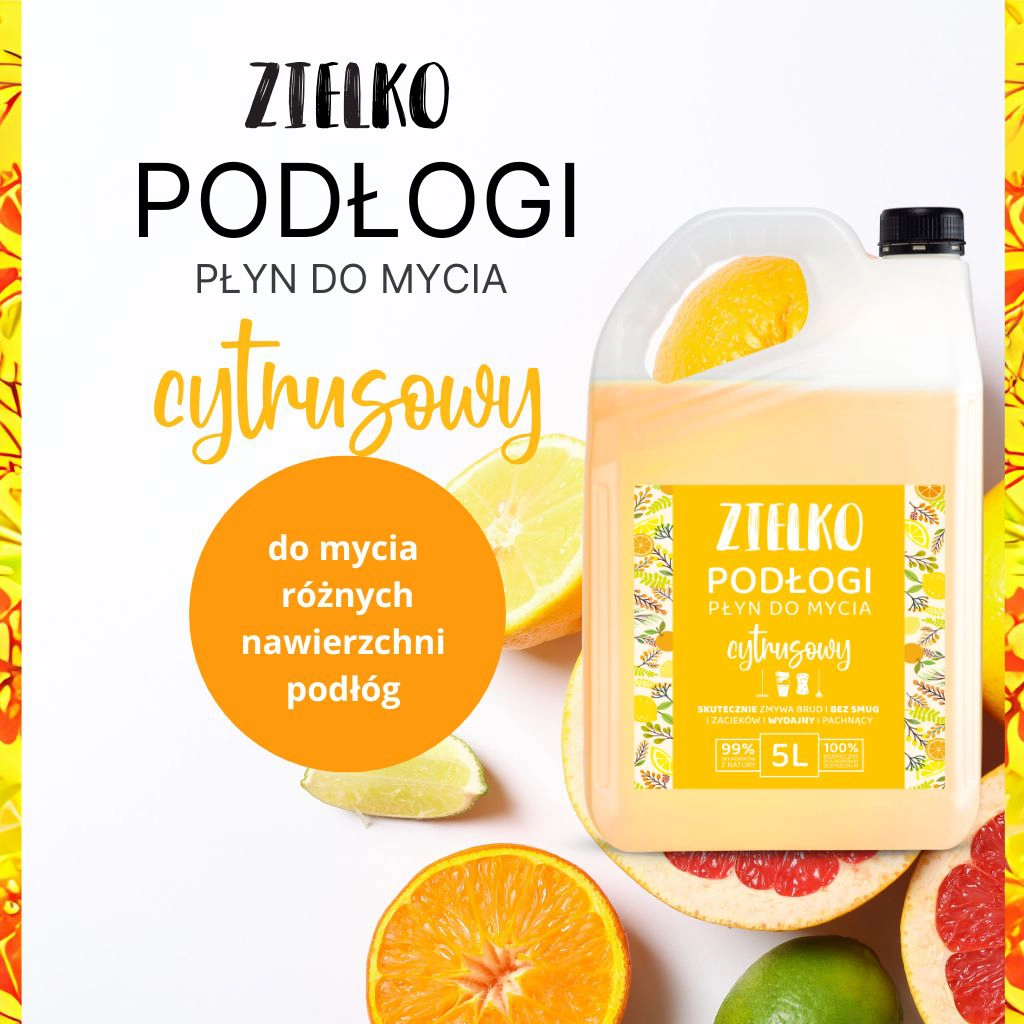 Kiedy sprzątasz często, liczy się zapas, który „nie znika” po kilku myciach. ZIELKO Cytrusowy 5L to pojemność stworzona dla większych powierzchni — mniej dźwigania zakupów, mniej zamawiania, więcej wygody. Świetnie sprawdzi się w domu z dziećmi lub zwierzętami, ale też w przestrzeniach, gdzie porządek musi być codziennym standardem: biura, klatki schodowe, salony, gabinety. Duży format to także lepsza organizacja — jeden kanister, jeden sprawdzony produkt, jeden zapach, który lubisz. W efekcie oszczędzasz czas, a sprzątanie staje się prostsze i bardziej przewidywalne.