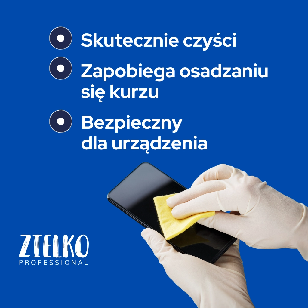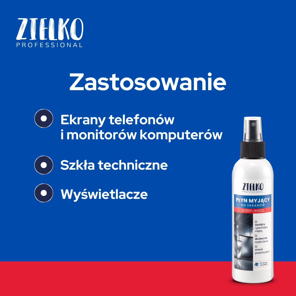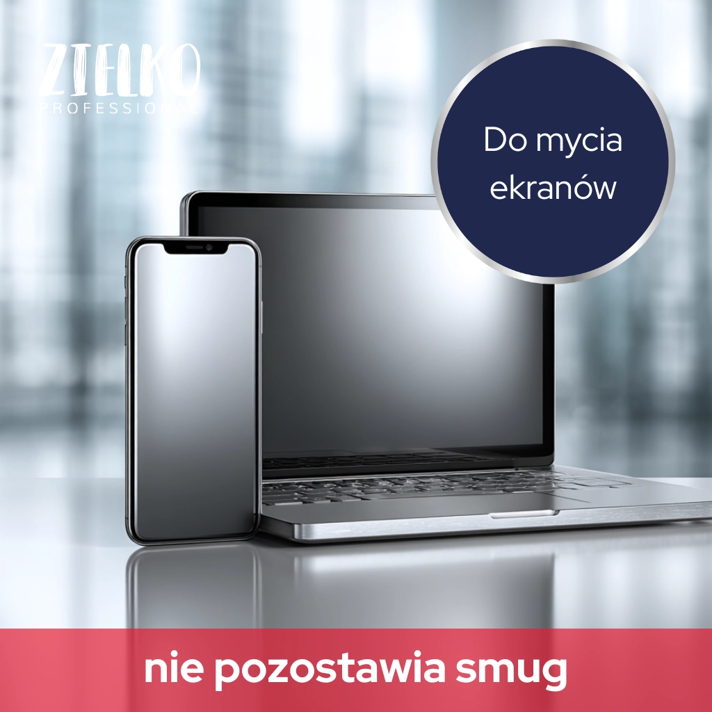 ZIELKO Professional do mycia ekranów został stworzony tak, aby usuwać zabrudzenia bez wysiłku i bez pozostawiania smug. Zaawansowana formuła efektywnie rozpuszcza tłuszcz i kurz, a jednocześnie nie narusza delikatnych powłok ekranu. Twój ekran wygląda jak nowy — bez rozmazywania i konieczności powtarzania czyszczenia.
