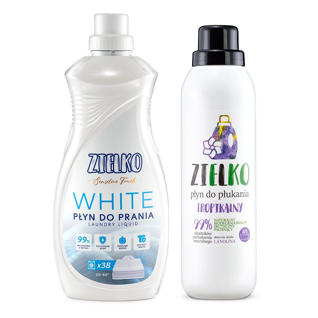 Białe ubrania i pościel, które zachowują swoją nieskazitelną biel na dłużej? To możliwe z naturalnym płynem do prania ZIELKO SENSITIVE TOUCH! Skuteczna formuła, oparta na składnikach naturalnych skutecznie usuwa plamy, jednocześnie dbając o włókna i przywracając tkaninom ich naturalną biel.