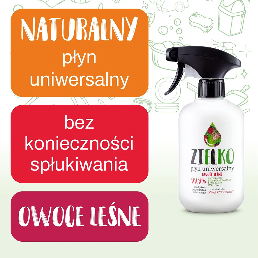 Zestaw ZIELKO to kompletny pakiet sześciu uniwersalnych środków do sprzątania, które zostały opracowane z myślą o codziennych porządkach w domu. Każdy produkt w zestawie łączy skuteczność w usuwaniu zabrudzeń z formułą opartą na składnikach naturalnych, biodegradowalnych i bezpiecznych dla środowiska. Dzięki temu możesz sprzątać kuchnię, łazienkę oraz inne pomieszczenia bez silnej chemii, która obciąża powietrze i powierzchnie. Naturalne składniki są przyjazne dla domowników i minimalizują ryzyko podrażnień skóry podczas kontaktu z preparatami. Przyjemne, owocowe zapachy dodatkowo umilają sprzątanie.