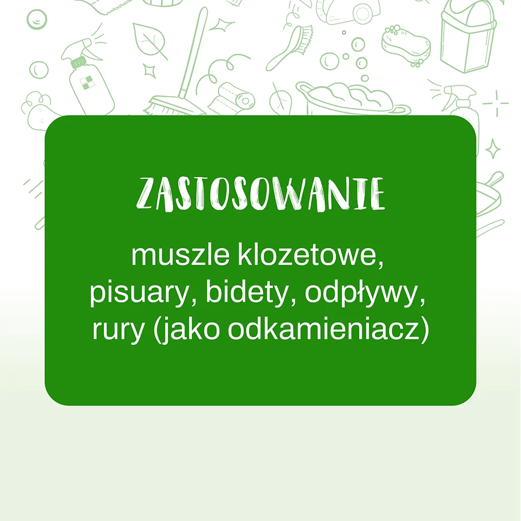 | Sposób użycia | Nanieść produkt pod krawędź muszli, a po chwili spłukać wodą. Przy silniejszych zabrudzeniach żel pozostawić na noc, a następnie wyszorować szczotką. |